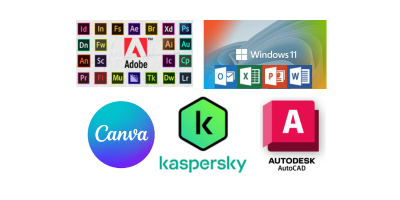 Ventas de licencias para uso personal, académico y empresarial. Incluye antivirus como Kaspersky, sistemas y herramientas de Microsoft / Windows 11, software de diseño de Adobe como Photoshop y Acrobat PDF, plataformas creativas como Canva y soluciones de diseño técnico como AutoCAD.